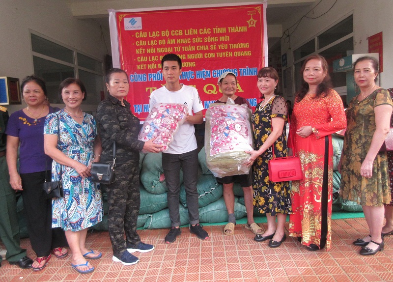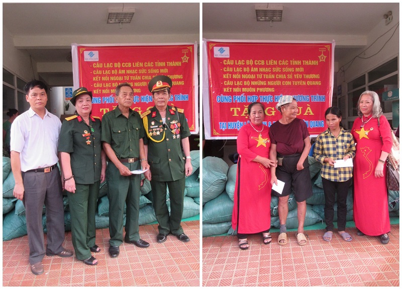 Tới thăm và tặng quà cho Trung tâm Y tế huyện Na Hang và một số gia đình chính sách có hoàn cảnh đặc biệt khó khăn ở thị trấn Na Hang. Ông Phan Văn Tuyến, Phó Chủ tịch thường trực CLB phát biểu: “.. Xuất phát từ nỗi nhớ niềm thương, vì tình thương chiến sĩ đồng bào, CLB đã thành lập từ 12 năm nay và chuyển qua nhiều giai đoạn lịch sử. Từ CLB Đường 9 - Quảng Trị - B5, rồi chuyển sang Đoàn 3 Chiến dịch Việt Nam. Song, để phù hợp với tình hình hoạt động, tại mảnh đất Côn Đảo Anh hùng, ngày 15/6/2015, chúng tôi quyết định đổi tên sang là CLB CCB liên các tỉnh thành. Chúng tôi phần lớn là những người thuộc diện “thất thập cổ lai hy”, nhưng mà chúng tôi đã gia nhập CLB để được sống lại những năm tháng hào hùng của dân tộc, để được trở lại các chiến trường xưa, được dâng hoa, thắp hương tri ân các AHLS, được đi tặng quà cho các chiến sĩ, đồng bào nơi biên giới, hải đảo. Vì vậy, hơn 10 năm nay chúng tôi đã đi khắp cả hai miền Nam Bắc, từ Mục Nam Quan đến Mũi Cà Mau, từ đồng bằng đến miền núi và biển đảo xa xôi. Và hôm nay, chúng tôi lại trở về thị trấn Na Hang để tặng quà cho Trung tâm Y tế và một số gia đình chính sách có hoàn cảnh khó khăn tại đây. Được về đây tặng quà và nhận được sự đón tiếp chu đáo của các đồng chí, đồng bào, chúng tôi tỏ lòng biết ơn sâu sắc đối với các đồng chí lãnh đạo và nhân viên của Trung tâm Y tế Na Hang. Cảm ơn các đồng chí CCB, các nhà hảo tâm, các tổ từ thiện thuộc CLB Âm nhạc Sức Sống Mới và CLB những người con Tuyên Quang kết nối muôn phương đã đồng hành cùng chúng tôi làm tốt nhiệm vụ của chuyến đi này…”.