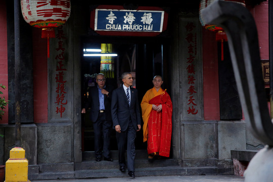 | Tổng thống Obama trong chùa Ngọc Hoàng. Ảnh: Reuters |