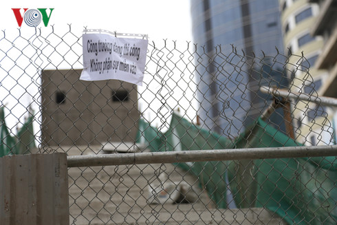 Hàng rào và biển báo công trường thi công được dựng lên sau khi PV phản ánh.
