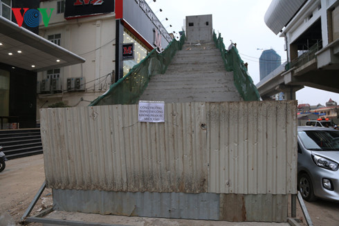 Các đường lên cầu thang chưa hoàn thiện thuộc đường sắt trên cao Cát Linh - Hà Đông đã được rào cứng sau khi PV phản ánh.