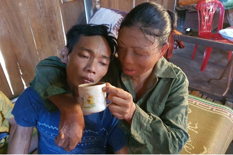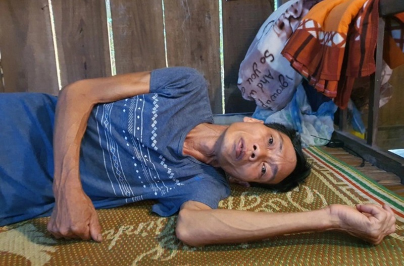 Từ một người đàn ông trụ cột gia đình, giờ đây anh Diễm gắn với chiếc giường, chỉ cần đi bộ chục bước chân cũng khiến người đàn ông này thở dốc rồi ngất lịm.