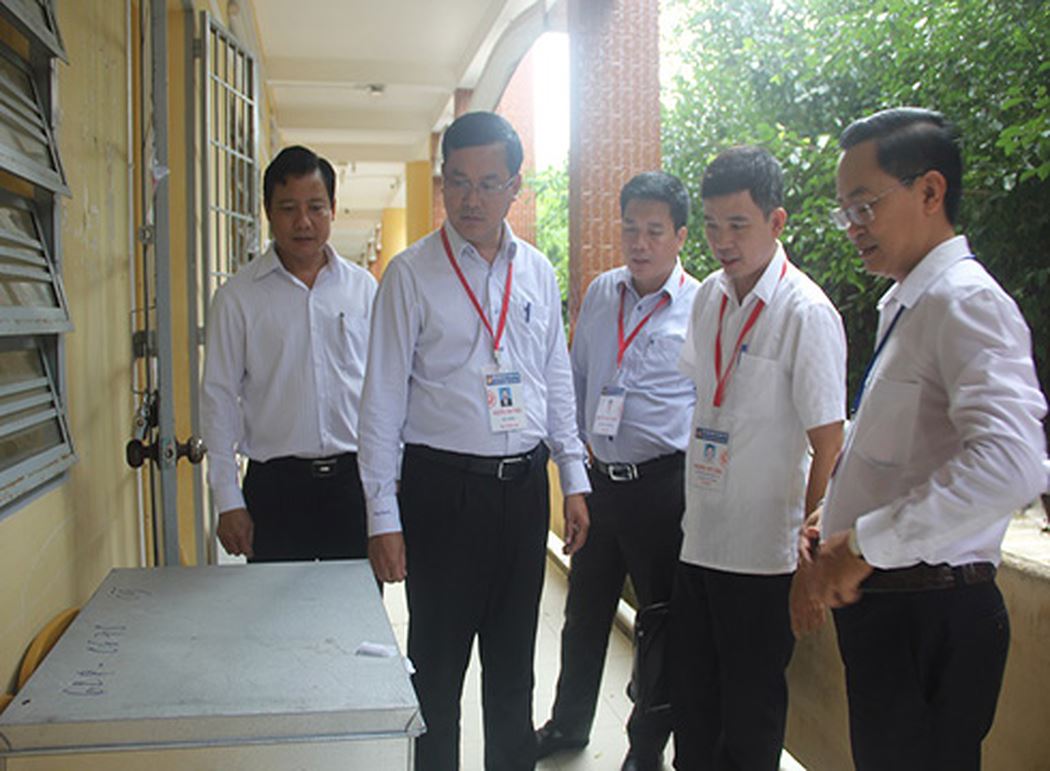 | Thứ trưởng Nguyễn Văn Phúc kiểm tra nơi đựng bài thi (ảnh: P.L) |