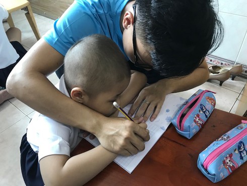 Cô Phấn tâm sự: “Các lớp học khác thì luôn mong có đông học sinh, nhưng với lớp học của chúng tôi, tôi lại chỉ mong ngày càng ít học sinh và số vở tôi lưu giữ trong kia ngày một ít đi. Chỉ mong sao các con được chữa khỏi bệnh, được về nhà, đó là mong ước lớn nhất của tôi”.