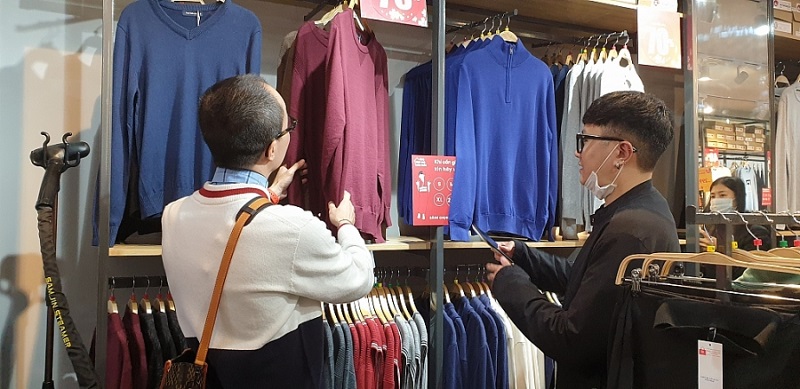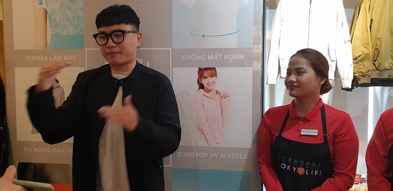 Vũ Gia Nguyên hướng dẫn khách hàng mua đồ (Ảnh: NVCC)