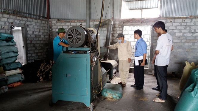 | Xưởng sản xuất thanh củi trấu tại xã Trấn Dương, huyện Vĩnh Bảo của Phạm Nguyên Lượng (ngoài cùng bên phải) |