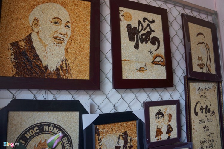 Chủ đề các bức tranh Tuân thường làm là chân dung, phong cảnh, thư pháp,…và một số chủ đề khác theo khách đặt hàng như logo, nhân vật hoạt hình... Qua bàn tay tài hoa của người họa sĩ 8X, những hạt gạo như được "thổi hồn" để trở thành những bức tranh độc đáo và đầy tính nghệ thuật.