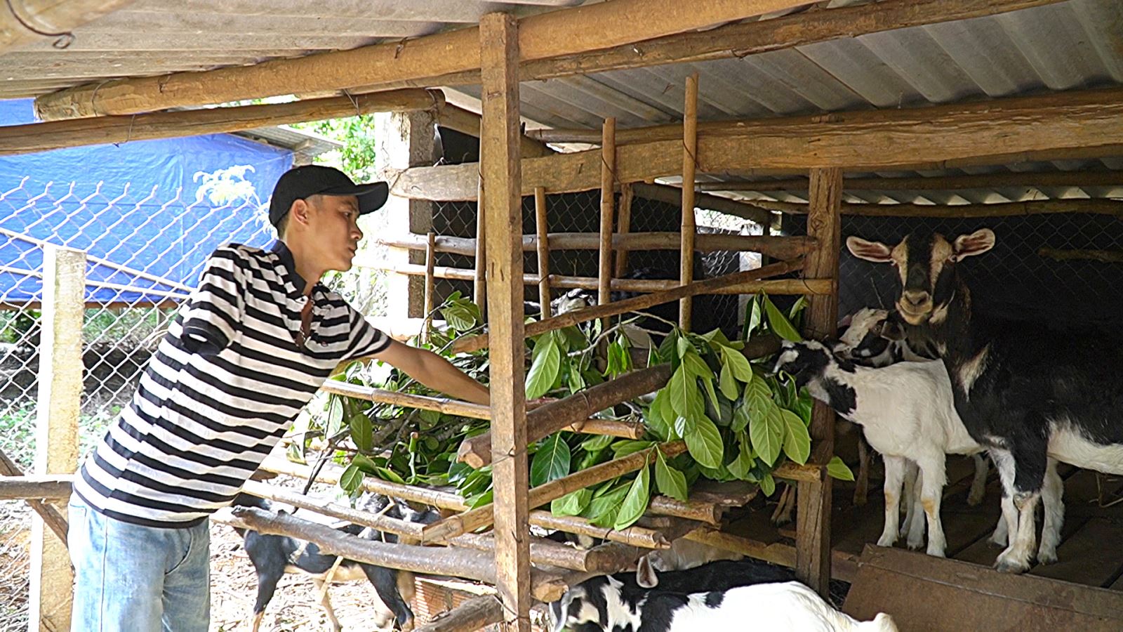 Anh Quang với trang trại chăn nuôi của mình (Ảnh: Đài phát thanh truyền hình Quảng Trị)