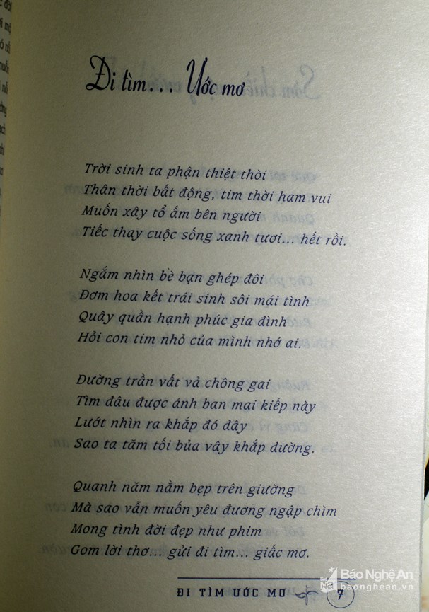 | Đi tìm ước mơ, tập sách đầu tay của chàng trai sáng tác từ điểm nhìn qua ô cửa sổ nhà sàn. Ảnh: Hữu Vi |