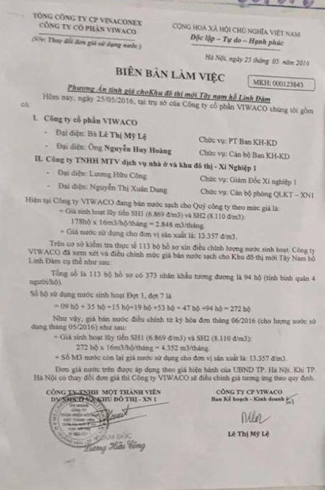 | Biên bản làm việc cách tính tiền nước sinh hoạt |