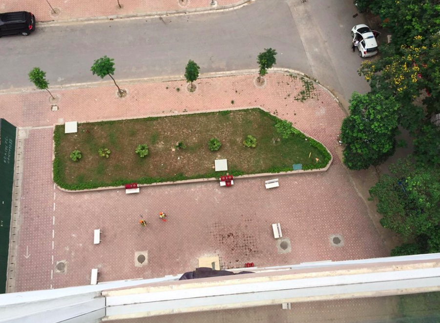 | PV Hoanhap.vn đứng từ tầng 11 chụp xuống sân sinh hoạt của toà nhà |