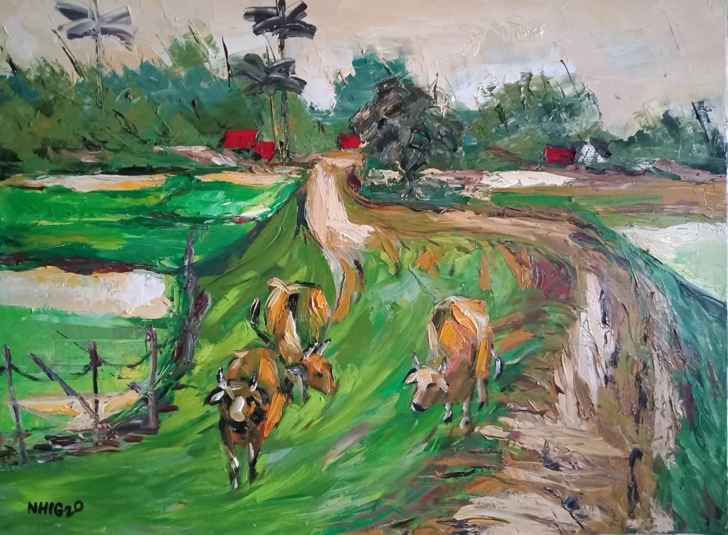 Tác phẩm: Triền đê – Trưng bày tại Triển lãm mĩ thuật Thanh Hóa năm 2020.