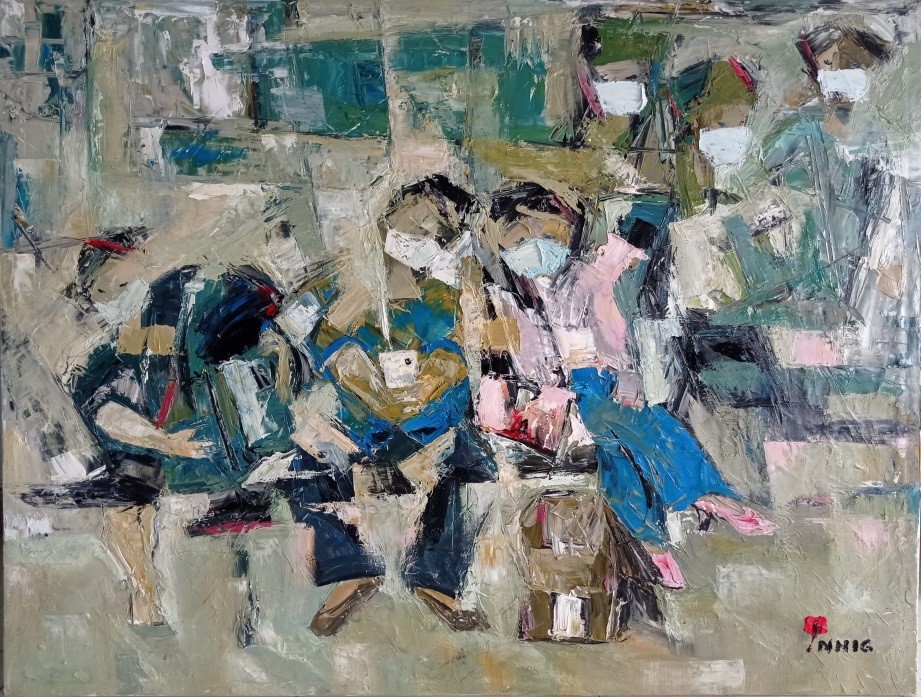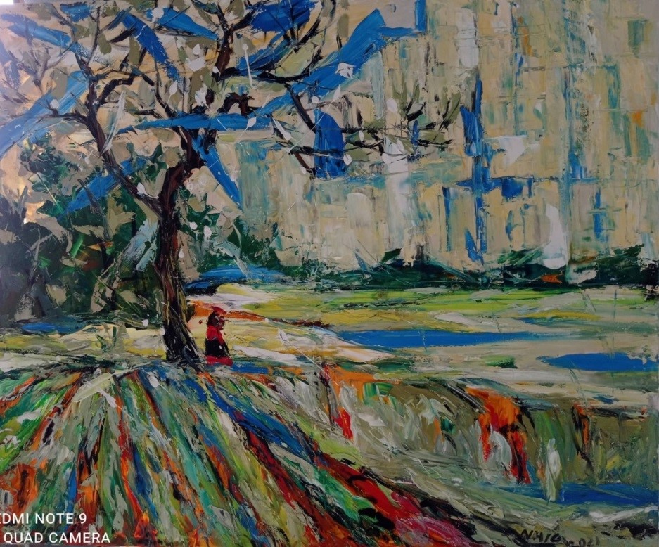Tác phẩm: Bên kia thành phố - Trưng bày tại Triển lãm Bắc miền Trung năm 2021.