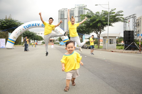 | Khánh Thi - Phan Hiển cùng con trai tham gia chạy bộ |