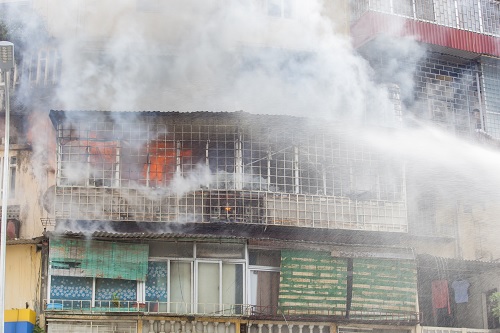 | Hiện trường vụ hỏa hoạn khi ngọn lửa đang lan nhanh |