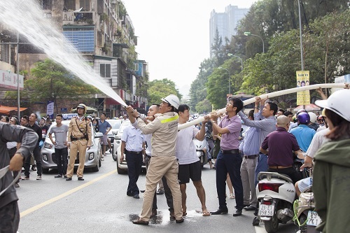 Trong thời khắc nguy cấp như vậy, các hộ dân xung quanh đã dùng bình cứu hỏa mini ra sức phun vào đám cháy, tuy nhiên ngọn lửa vẫn lan nhanh. Một số CBCNV của công ty lớn đặt trụ sở ở đối diện khu tập thể đã nhanh trí phối hợp cùng lực lượng chức năng điều tiết, phân luồng giao thông, sử dụng hệ thống vòi cứu hỏa để dập đám cháy trong khi chờ lực lượng PCCC ứng cứu.