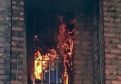 Nơi ngọn lửa bùng phát từ ngôi nhà.