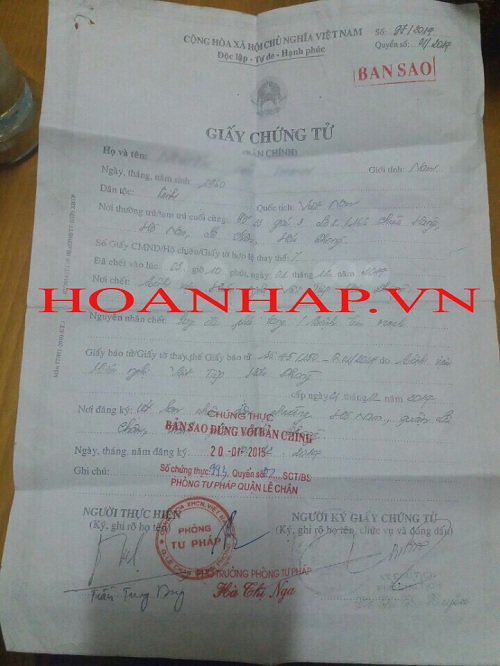 Chứng minh nhân dân và giấy chứng tử của ông N.C.T do gia đình cung cấp.