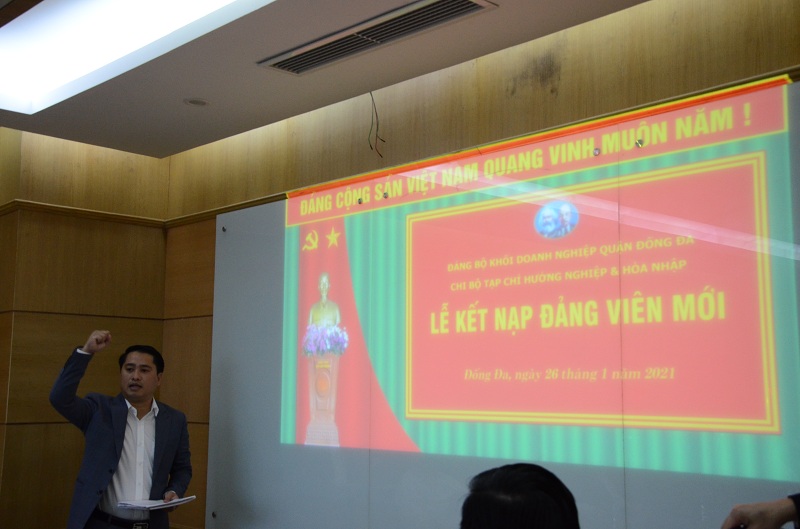 Lễ kết nạp được diễn ra trong không khí trang nghiêm, đúng trình tự, thủ tục kết nạp Đảng viên mới với sự tham gia của đồng chí Vũ Mạnh Chiến – Quận ủy viên, Bí thư Đảng ủy khối doanh nghiệp; đồng chí Nguyễn Trọng Hồng – Nguyên bí thư Đảng ủy khối doanh nghiệp cùng các đồng chí trong văn phòng của Đảng ủy khối quận Đống Đa. Về phía lãnh đạo hiệp hội DN của Thương binh và NKT Việt Nam có Thiếu tướng Lê Mã Lương - AHLLVTND, Ủy viên đoàn Mặt trận Tổ quốc Việt Nam, Chủ tịch Hiệp hội Doanh nghiệp của Thương binh và Người khuyết tật Việt Nam. Về phía Chi bộ Tạp chí Hướng nghiệp và Hòa nhập có đồng chí Nguyễn Ngọc Quyết – Bí thư Chi bộ, Tổng biên tập Tạp chí cùng toàn thể 11 Đảng viên, các đồng chí là lãnh đạo của đơn vị. Tại buổi Lễ, đồng chí Nguyễn Ngọc Quyết - Bí thư Chi bộ tạp chí đã trao Quyết định kết nạp và phân công nhiệm vụ cho Đảng viên mới, đồng thời phân công các đồng chí Đảng viên chính thức trong chi bộ tiếp tục giúp đỡ, dìu dắt đồng chí Đảng viên mới trong thời gian tới.