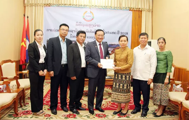 Chiều cùng ngày, đại diện Tổng hội, Hội người Việt Nam thủ đô Vientiane cũng đã trao 50 triệu kíp Lào (khoảng 5.950 USD), ông Cao Anh Sơn, Tổng giám đốc Star Telecom trao số tiền 300 triệu kíp Lào (tương đương 35.700 USD) cho Bộ Lao động và Phúc lợi xã hội Lào để hỗ trợ người dân Lào.