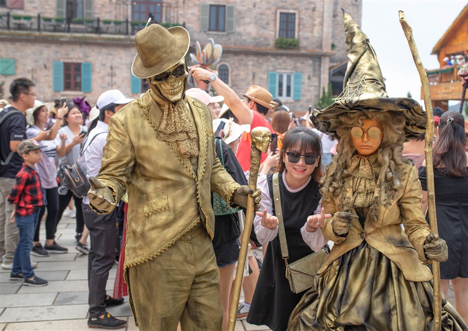 “Tôi và bạn gái tình cờ đến Bà Nà chơi trong chuyến du lịch xuyên Việt. Cứ nghĩ đến một lần cho biết Bà Nà như thế nào thôi, không ngờ đúng dịp Halloween, thấy Bà Nà đầu tư đẳng cấp quá. Tôi chưa bao giờ thấy một lễ hội Halloween nào hoành tráng và ấn tượng đến thế”, Hoàng Anh, đến từ Điện Biên trầm trồ.