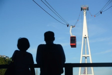 Nhiều bạn trẻ cũng đã xếp hàng mua vé, để tận hưởng những khoảnh khắc tĩnh lặng đứng chờ cabin tới tại tầng hai của ga đi, ngắm cáp treo đi và đến, phía xa là trụ cáp cao nhất thế giới, xa hơn nữa là vòng quay Mặt Trời.