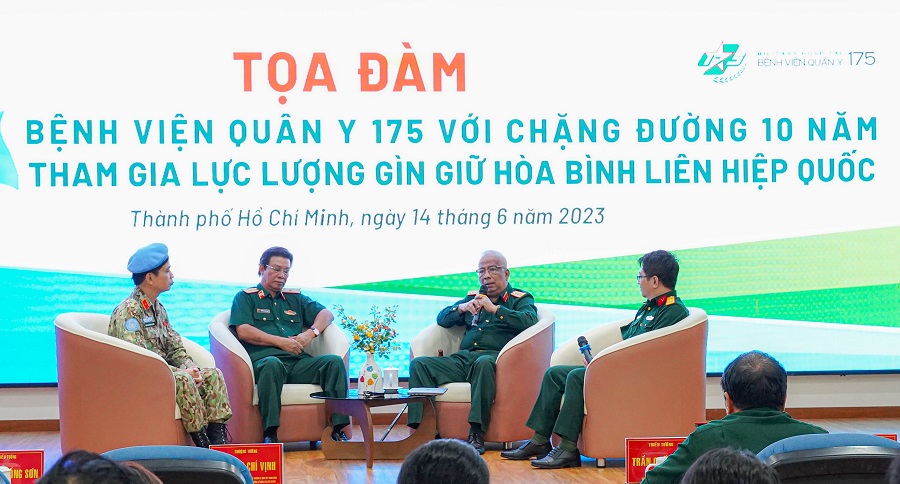 Ngày 14/6, Bệnh viện Quân y 175 đã có buổi tọa đàm về chặng đường 10 năm tham gia hoạt động gìn giữ hòa bình Liên Hợp quốc. Tham dự tọa đàm có thượng tướng Nguyễn Chí Vịnh – Nguyên Thứ trưởng Bộ Quốc phòng; Thiếu tướng Hoàng Kim Phụng – Nguyên Cục trưởng Cục gìn giữ hòa bình Việt Nam; Thiếu tướng, PGS, TS. Nguyễn Hồng Sơn – Phó Chủ tịch Hội đồng Bảo vệ sức khỏe cán bộ miền Nam; đại diện lãnh đạo Bệnh viện dã chiến số 2 cấp 1; số 2 cấp 3 và các chiến sĩ của bệnh viện dã chiến số 2 cấp 5 đang chuẩn bị lên đường làm nhiệm vụ.