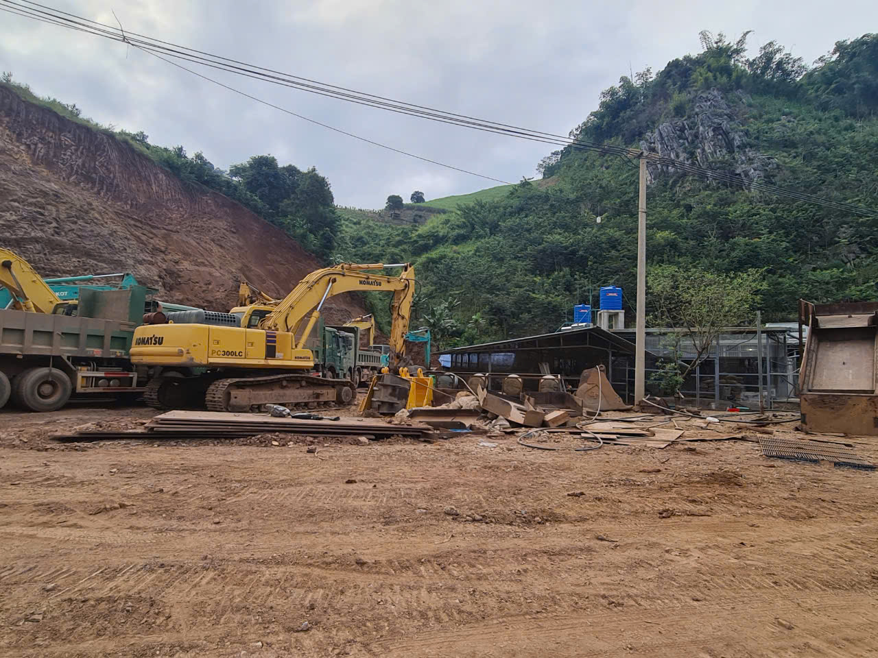 Máy móc thiết bị đã được tập kết tại lán trại.