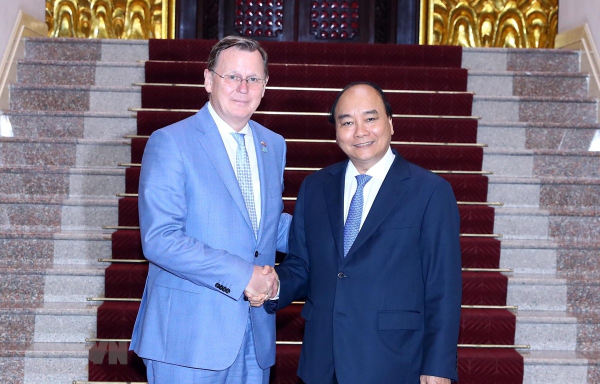 | Thủ tướng Nguyễn Xuân Phúc tiếp ông Bodo Ramelow, Thủ hiến Bang Thüringen, Cộng hòa Liên bang Đức. (Ảnh: Thống Nhất/TTXVN) |