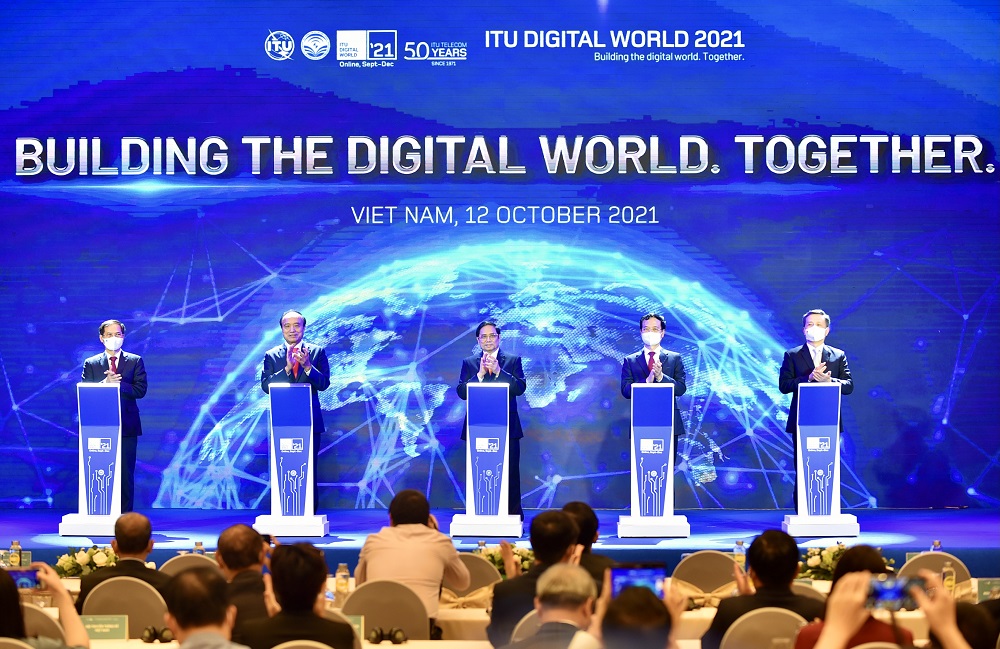 Tối ngày 12/10, Thủ tướng Chính phủ Phạm Minh Chính dự và phát biểu tại lễ khai mạc Hội nghị và Triển lãm thế giới số 2021 (ITU Digital World 2021) với chủ đề “Chung tay xây dựng thế giới số”. Sự kiện do Bộ Thông tin và Truyền thông phối hợp với Liên minh Viễn thông Quốc tế (ITU) tổ chức theo hình thức trực tuyến trên nền tảng số do Việt Nam xây dựng.