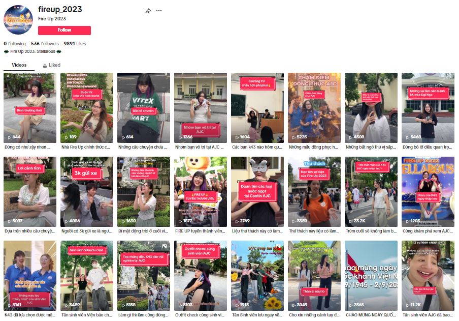Kênh TikTok chính thức của Fire Up 2023: Stellarous.