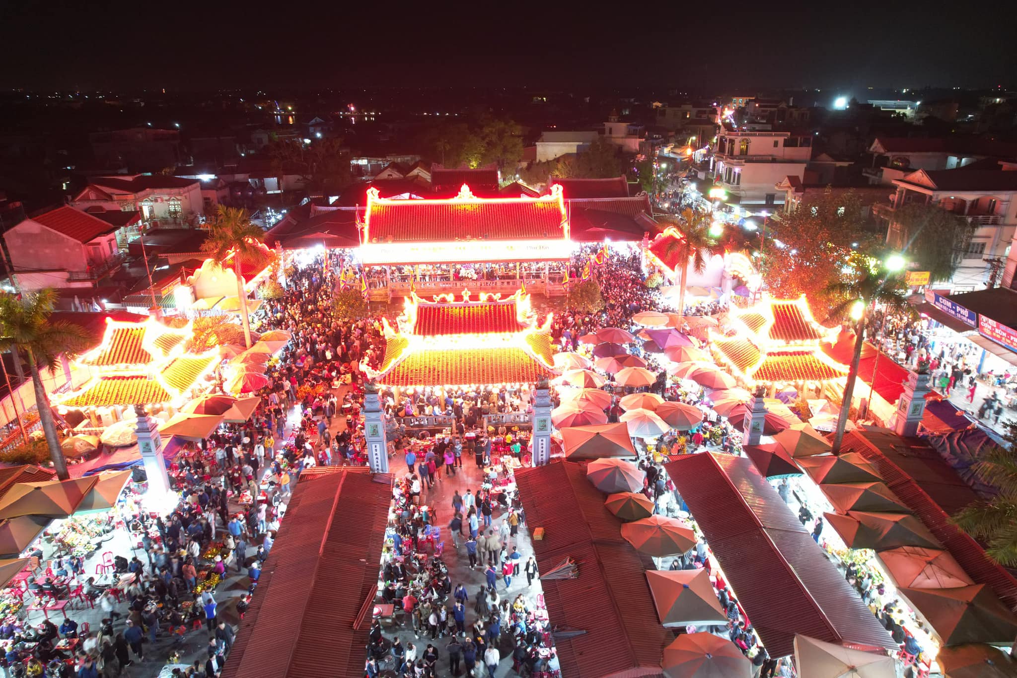 Cảnh tấp nập trong đêm Chợ Viềng Phủ Dầy trước cửa Phủ Chính nơi Thánh Mẫu Liễu Hạnh giáng sinh