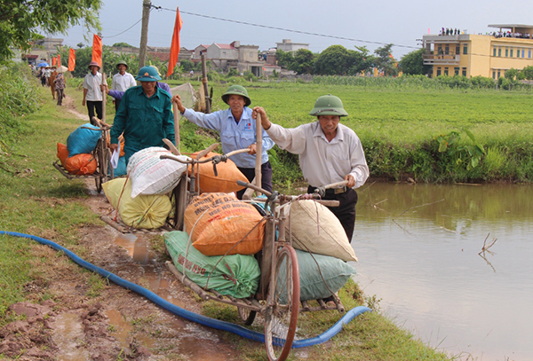 | Diễn tập phòng chống, giảm nhẹ thiên tai năm 2017 tại xã Đại Thắng, huyện Vụ Bản, tỉnh Nam Định - Ảnh Quốc Huy. |
