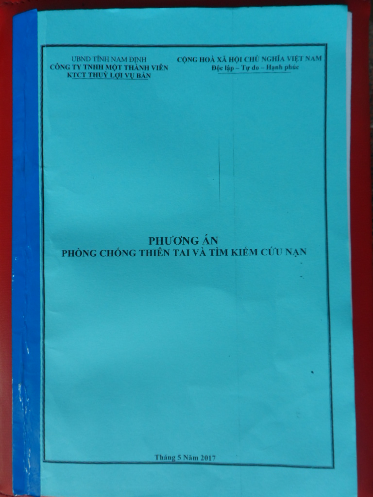 | Phương án Phòng chống thiên tai và tìm kiếm cứu nạn năm 2017 của Công ty TNHH MTV Khai thác công trình thủy lợi huyện Vụ Bản, tỉnh Nam Định. |