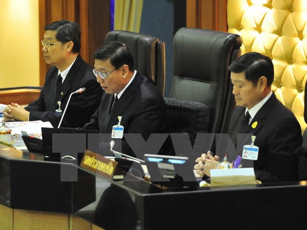 | Chủ tịch Hội đồng lập pháp Quốc gia Thái Lan Pornpetch Wichitcholchai (giữa) trong phiên họp đặc biệt của NLA tại thủ đô Bangkok. (Nguồn: THX/TTXVN) |