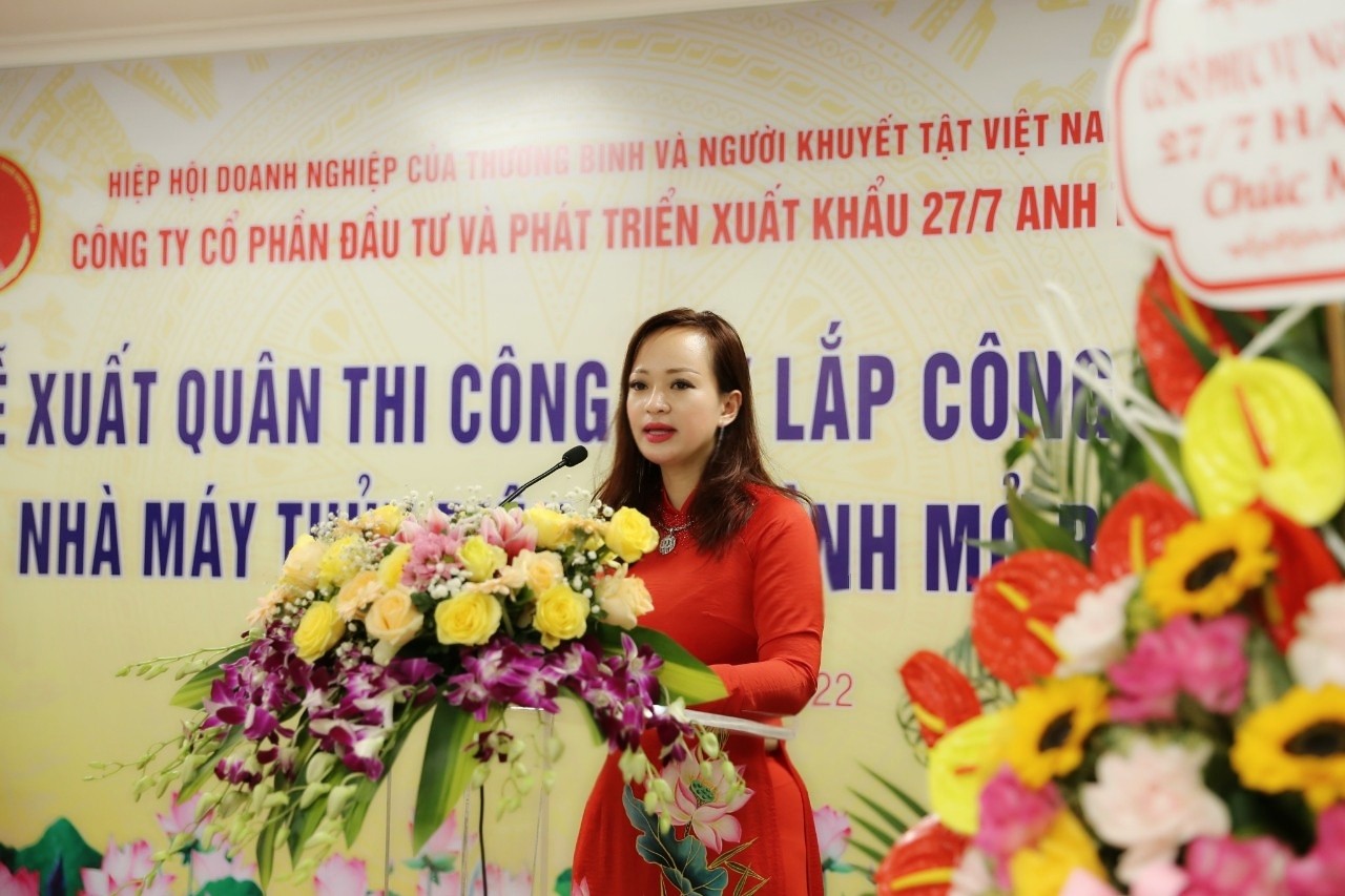Thay mặt CBCNV Công ty CP Đầu tư và Phát triển Xuất khẩu 27/7 Anh Thư, Chủ tịch HĐQT, Tổng Giám đốc công ty, Nghiêm Xuân Anh phát biểu: “Chúng tôi xin tiếp thu ý kiến chỉ đạo của Thiếu tướng Lê Mã Lương, AHLLVTND, Ủy viên đoàn chủ tịch MTTQVN, Chủ tịch Hiệp hội Doanh nghiệp của Thương binh và Người khuyết tật Việt Nam.