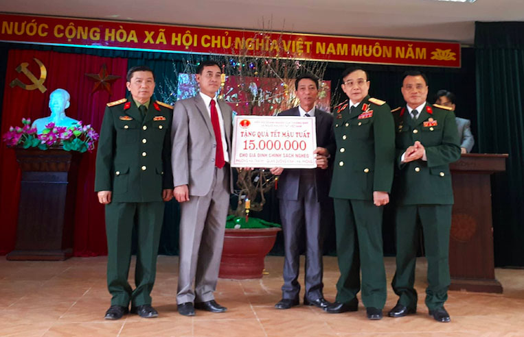 Chủ tịch Lê Mã Lương và ban lãnh đạo Hiệp hội trao quà tặng Tết Mậu Tuất cho các gia đình chính sách tại phường Hải Thành - quận Dương Kinh - Hải Phòng, đại diện ban lãnh đạo phường Hải Thành đã lên nhận quà. |