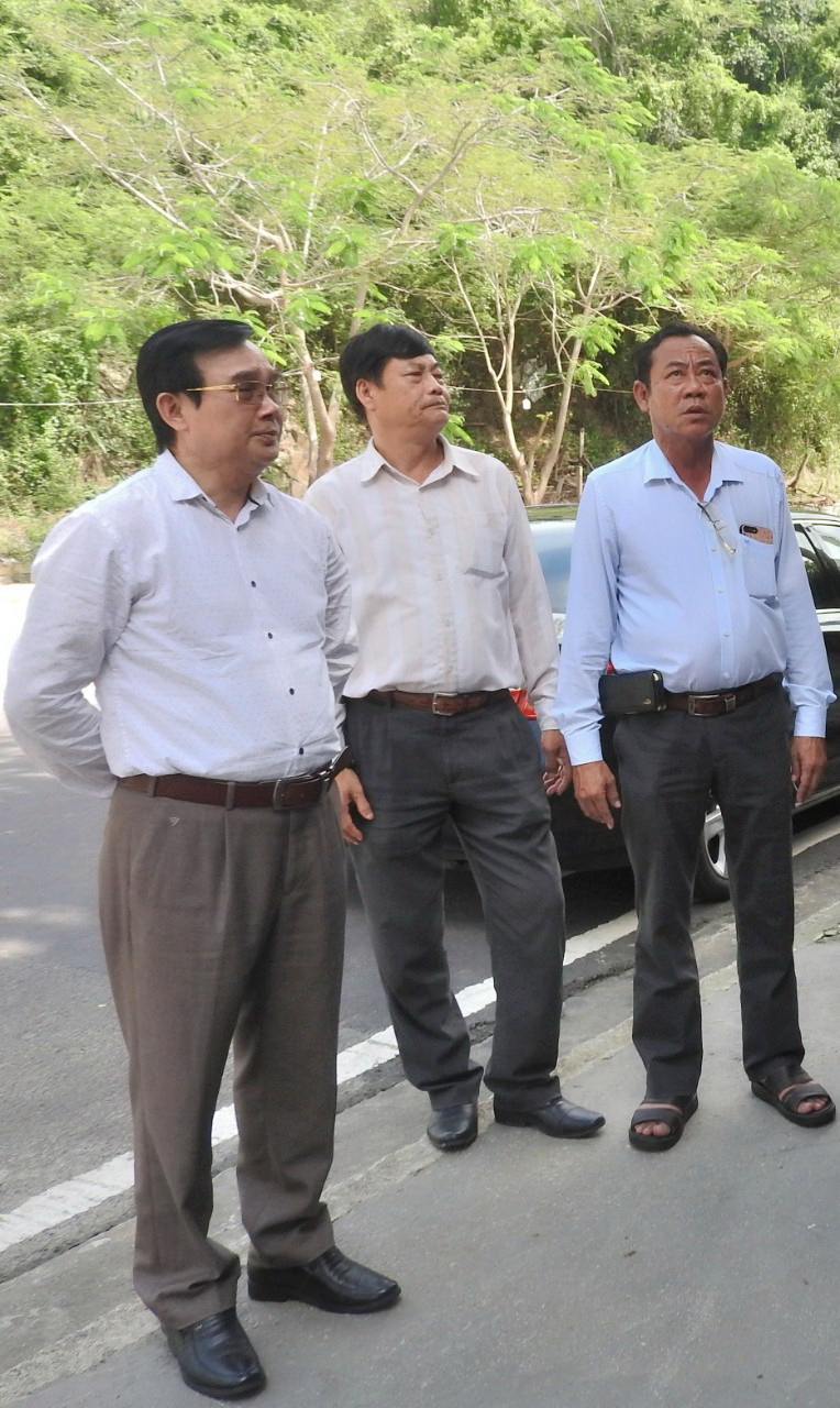 Giám đốc Nguyễn Văn Dũng (nguời đứng ngoài cùng bên phải) giới thiệu với Thiếu tướng Lê Mã Lương, Chủ tịch VAIDE và ông Lê Vinh Lợi về Dự án khu du lịch sinh thái – Lữ quán Thiên Phước.