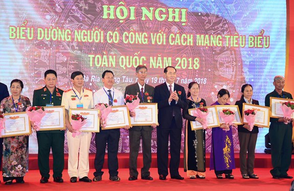 Chủ tịch nước Trần Đại Quang yêu cầu phát huy vai trò của Mặt trận Tổ quốc Việt Nam, các tổ chức chính trị - xã hội, tổ chức xã hội - nghề nghiệp và của toàn xã hội trong công tác chăm sóc người có công với cách mạng. Thường xuyên quan tâm, nắm bắt tâm tư, nguyện vọng của người có công, kiến nghị cấp ủy và cơ quan Nhà nước có thẩm quyền kịp thời giải quyết các vấn đề liên quan, bảo đảm quyền lợi của người có công với cách mạng.