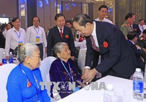 Thay mặt lãnh đạo Đảng, Nhà nước, Chủ tịch nước Trần Đại Quang đã tặng quà 6 Mẹ Việt Nam Anh hùng có mặt tại Hội nghị.