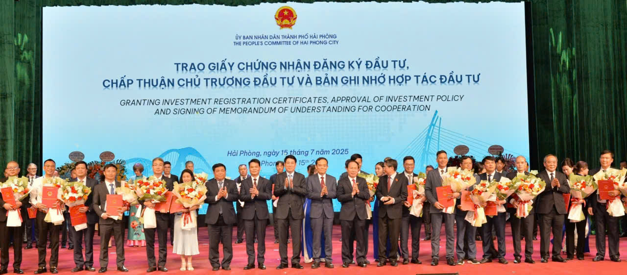 Hội nghị đã diễn ra Lễ trao “Giấy chứng nhận đăng ký đầu tư” và các “Biên bản ghi nhớ hợp tác đầu tư” với tổng số vốn đăng ký lên tới 15,5 tỷ đô la Mỹ. Dưới sự chứng kiến của Chủ tịch nước và các lãnh đạo, Bí thư Thành ủy Hải Phòng và Chủ tịch UBND TP.Hải Phòng Lê Ngọc Châu đã trao “Giấy chứng nhận đăng ký đầu tư” cho các dự án trọng điểm. Các dự án phát triển hạ tầng KCN Tân Trào, Ngũ Phúc, Thủy Nguyên, Trấn Dương - Hòa Bình, Sân bay Tiên Lãng, Bình Giang, Hoàng Diệu, Kim Thành 2 và các dự án thành phần trong khu công nghiệp với tổng vốn đầu tư gần 10 tỷ đô la Mỹ sẽ góp phần hình thành các tổ hợp công nghiệp công nghệ cao, hiện đại, tạo ra hàng chục nghìn việc làm và thúc đẩy phát triển kinh tế - xã hội cho các địa phương. Dự án đầu tư các bến số 9, 10, 11, 12 cảng Lạch Huyện với vốn đầu tư gần 1 tỷ đô la Mỹ giúp nâng cao năng lực thông quan, khẳng định vị thế trung tâm logistics của khu vực. Các dự án FDI về công nghệ cao như Shin-Etsu và các “Biên bản ghi nhớ hợp tác đầu tư” để phát triển các dự án quan trọng về giao thông, đô thị với tổng số vốn gần 5 tỷ đô la Mỹ, mở ra những cơ hội hợp tác mới, sâu rộng hơn giữa thành phố Hải Phòng với các đối tác chiến lược.