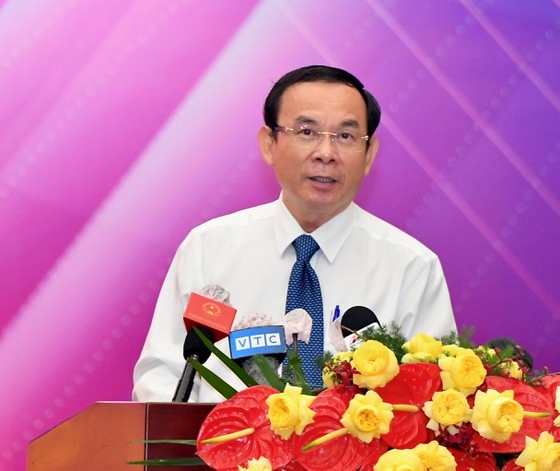 Bí thư Thành ủy TP Hồ Chí Minh Nguyễn Văn Nên phát biểu tại hội nghị. Ảnh: VIỆT DŨNG