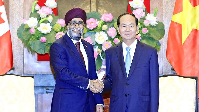Chủ tịch nước Trần Đại Quang nhiệt liệt chào mừng Bộ trưởng Harjit Singh Sajjan và Đoàn đại biểu Bộ Quốc phòng Canada sang thăm chính thức Việt Nam trong bối cảnh hai nước đang triển khai cam kết của lãnh đạo cấp cao nhằm thúc đẩy quan hệ Đối tác toàn diện vừa được thiết lập năm 2017 và hướng tới kỷ niệm 45 năm thiết lập quan hệ ngoại giao (21/8/1973 - 21/8/2018).