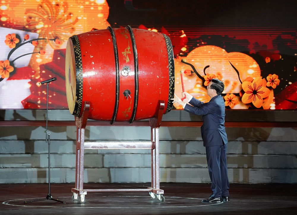 Chủ tịch nước Võ Văn Thưởng đánh trống khai mạc Hội xuân.