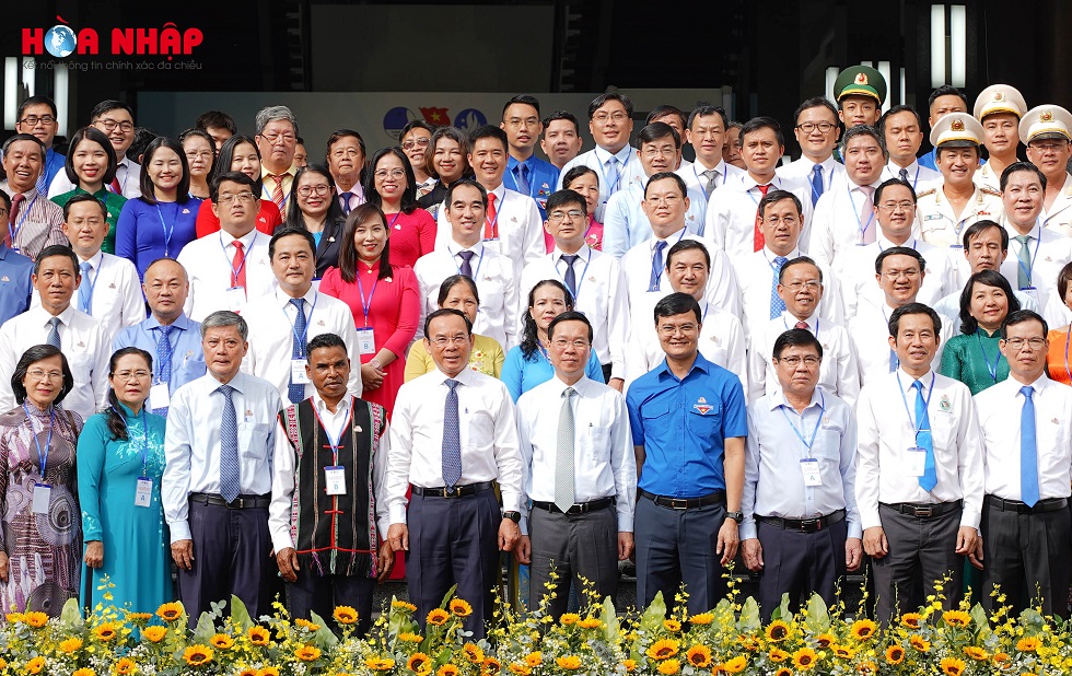 Chủ tịch nước Võ Văn Thưởng chụp ảnh lưu niệm cùng các đại biểu tham gia chương trình họp mặt.
