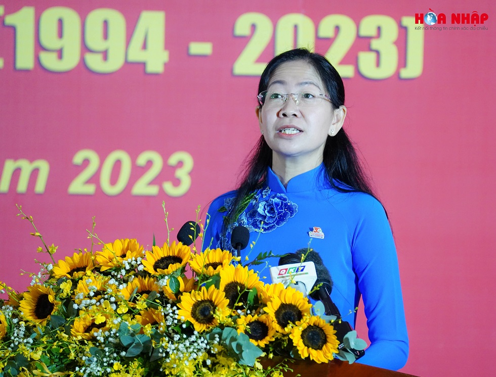Bà Nguyễn Thị Thanh Phương - Bí thư Thành Đoàn TP Hồ Chí Minh đã ôn lại hành trình 30 năm các chương trình, chiến dịch tình nguyện hè của thanh niên TP.HCM (1994 - 2023).