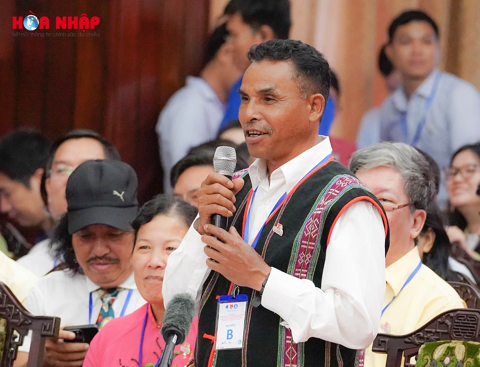 Ông Điểu Đá, đại diện gia đình nuôi chiến sĩ tình nguyện tại tỉnh Đắk Nông chia sẻ về những kỷ niệm gắn bó cùng tuổi trẻ TP Hồ Chí Minh trong việc hỗ trợ địa phương xây dựng các công công cộng.