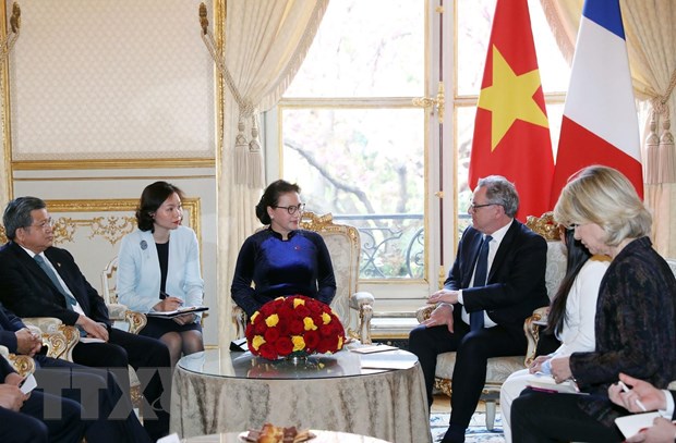 Hai nhà lãnh đạo vui mừng nhận thấy quan hệ giữa cơ quan lập pháp hai nước ngày càng được thúc đẩy và phát triển tích cực. Quan hệ hai nước phát triển mạnh mẽ trong thời gian qua với việc tăng tần suất các chuyến thăm của lãnh đạo cấp cao hai nước (chuyến thăm chính thức Pháp của Tổng Bí thư Nguyễn Phú Trọng vào tháng 3/2018, đến tháng 11/2018, Thủ tướng Pháp Edouard Philippe thăm chính thức Việt Nam và lần này là chuyến thăm chính thức Pháp của Chủ tịch Quốc hội Nguyễn Thị Kim Ngân).