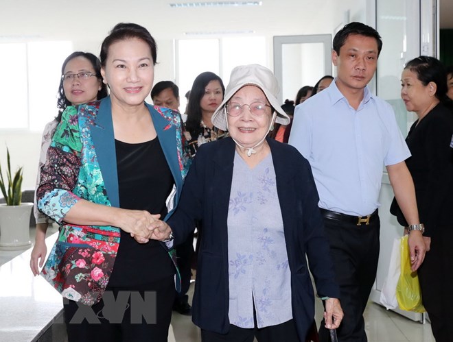 | Chủ tịch Quốc hội Nguyễn Thị Kim Ngân với các cử tri phường An Phú. (Ảnh: Trọng Đức/TTXVN) |