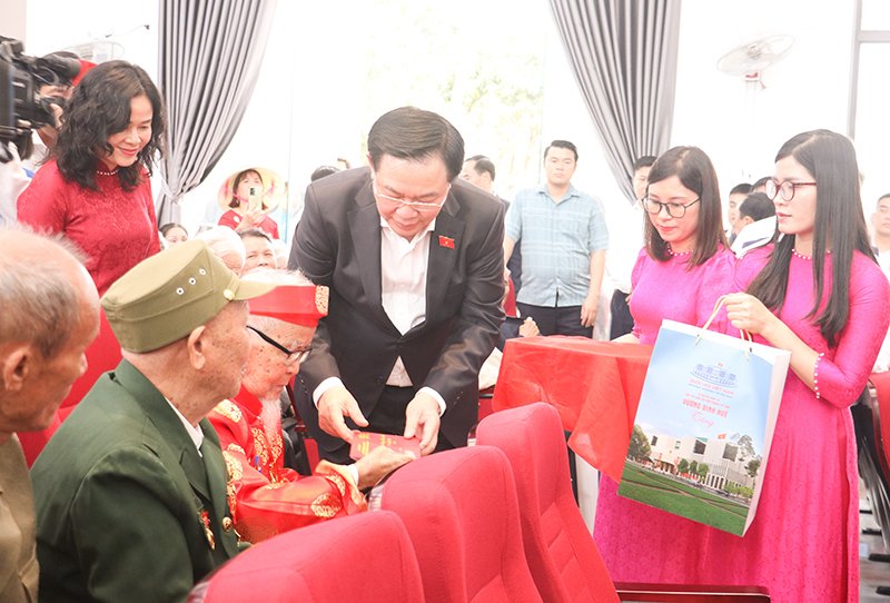 Chủ tịch Quốc hội Vương Đình Huệ vui mừng khi thời gian qua, Đảng bộ, Chính quyền huyện rất đoàn kết; người dân chịu thương, chịu khó; nhất là những dịp tết đến xuân về truyền thống thương người như thể thương thân được phát huy. Từ Trung ương đến địa phương, các đoàn thể đều thực hiện Chỉ thị chung của Ban Bí thư trong việc tạo điều kiện tốt nhất cho mọi người dân được vui xuân, đón tết theo tinh thần “lá lành đùm lá rách, lá rách ít đùm là rách nhiều”. Tỉnh Nghệ An rất quan tâm đến công tác chăm lo tết cho các hộ gia đình chính sách. Hiện nay toàn tỉnh đang tích cực hưởng ứng Thư kêu gọi của đồng chí Bí thư Tỉnh ủy về ủng hộ để chăm lo tốt hơn cho các gia đình chính sách nhân dịp Tết đến Xuân về.