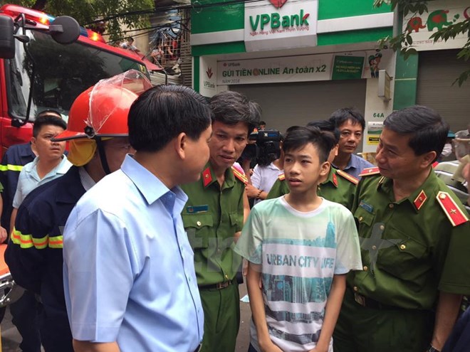 Chủ tịch Ủy ban nhân dân Thành phố Hà Nội Nguyễn Đức Chung trực tiếp có mặt chỉ đạo ở hiện trường. (Ảnh: Lê Minh Sơn/Vietnam+) |